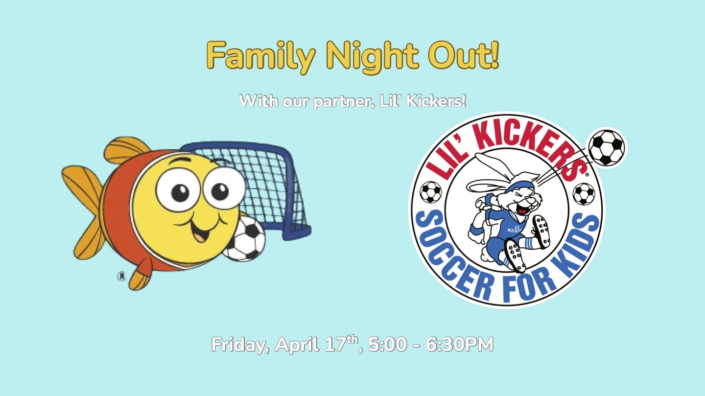 Join us and our friends from Lil’ Kickers for our April Family Night Out! We’re excited to kick off the event with some fun soccer activities; then we’ll trade in our soccer cleats for swimming flippers as we enjoy an hour of open swim.