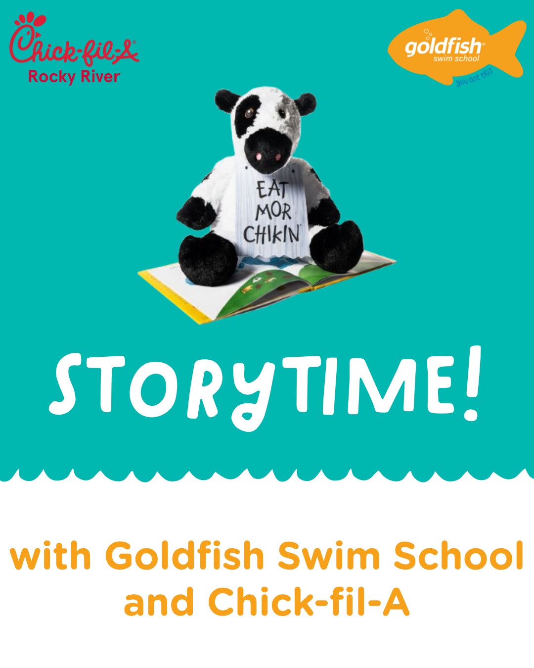 Twice a month enjoy a Storytime with Goldfish Swim School and Chick-fil-A.